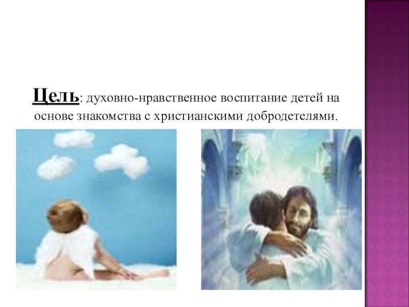 Слайд 2Цель: духовно-нравственное воспитание детей на основе знакомства с христианскими добродетелями.
