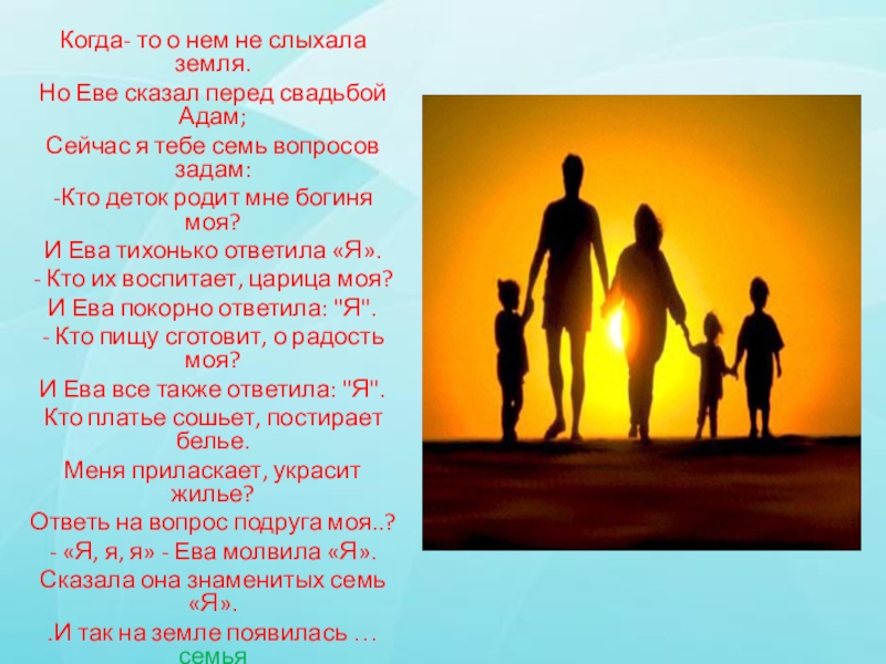 Слайд 7« В давние времена жила одна семья, и в ней царили