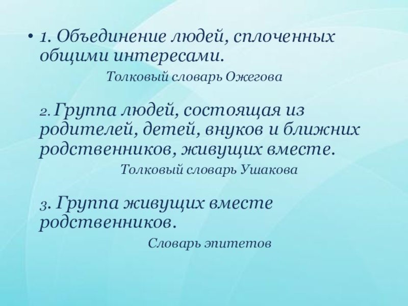 Слайд 41. Объединение людей, сплоченных общими интересами.