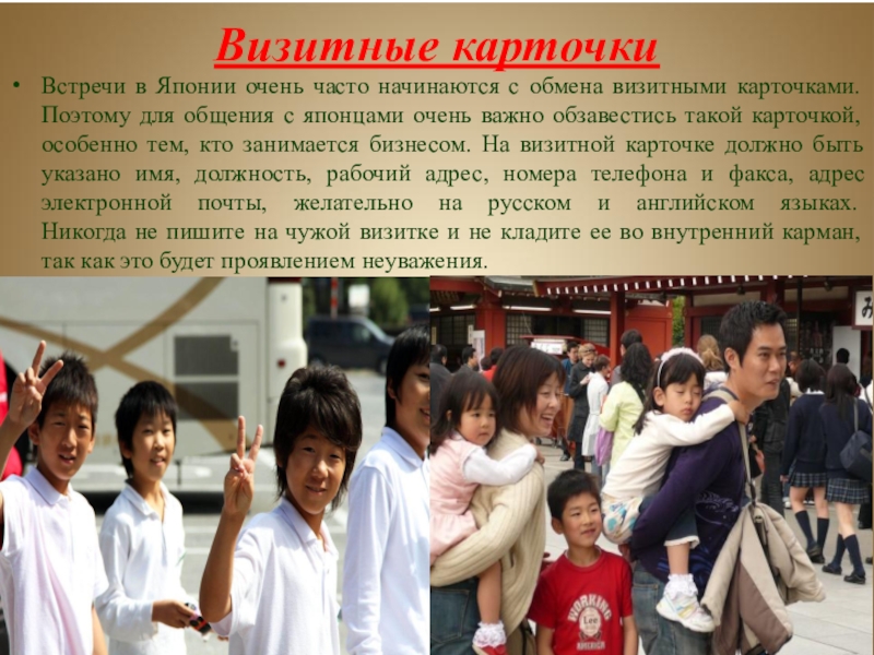 Встречи в Японии очень часто начинаются с обмена визитными карточками.