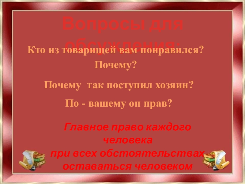 Это сайт презентаций, где можно хранить и обмениваться своими презентациями, докладами, проектами, шаблонами в формате PowerPoint с другими пользователями. Мы помогаем школьникам, студентам, учителям, преподавателям хранить и обмениваться учебными материалами.
