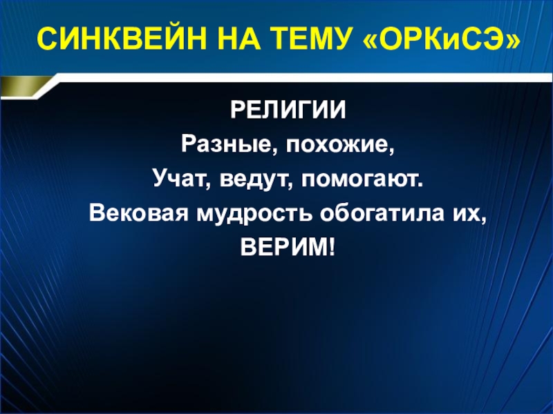 Слайд 33СИНКВЕЙН НА ТЕМУ «ОРКиСЭ»