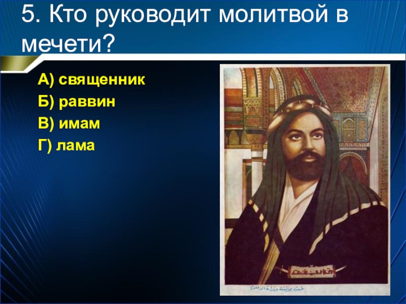 Слайд 65. Кто руководит молитвой в мечети?