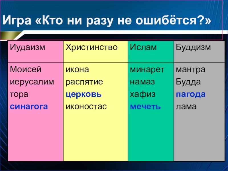 христианстве, исламе, иудаизме и буддизме.