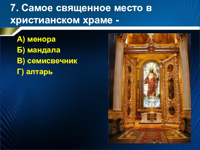 Слайд 87. Самое священное место в христианском храме -