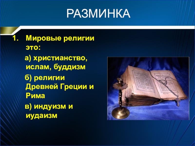 а) христианство, ислам, буддизм
