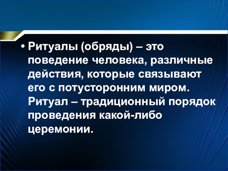Ритуалы (обряды) – это поведение человека, различные действия, которые связывают его