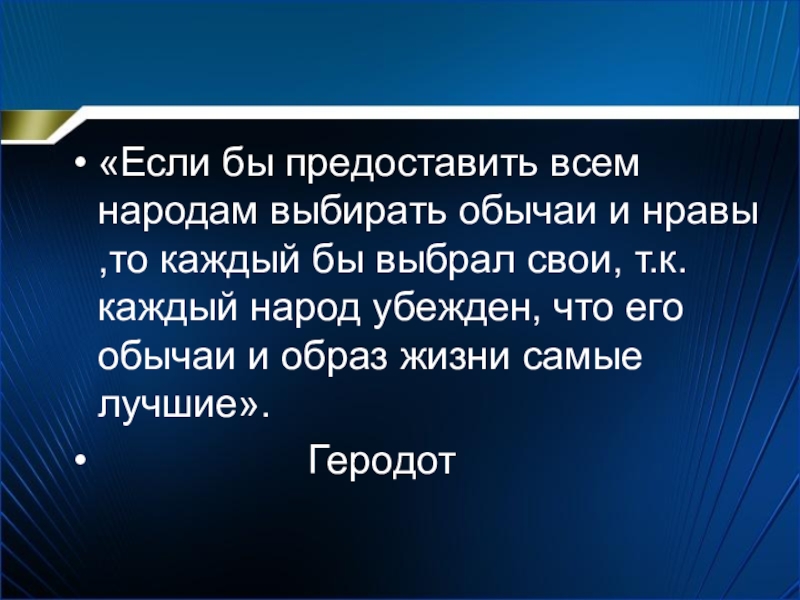 «Если бы предоставить всем народам выбирать обычаи и нравы ,то каждый