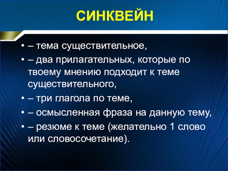 Синквейн – это стихотворение, которое требует синтеза информации и материала в