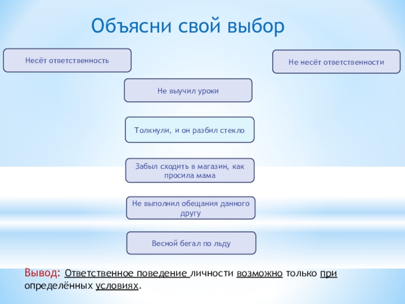 Вывод: Ответственное поведение личности возможно только при определённых условиях.