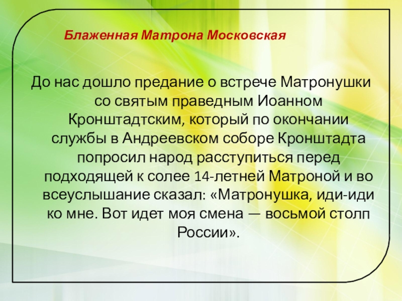 Сретение св. блж. Матроны со св. прав. Иоанном Кронштадтским. Икона.