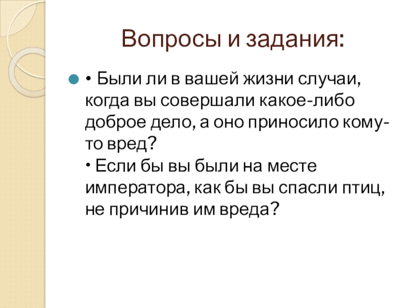 • Если бы вы были на месте императора, как бы вы спасли птиц, не причинив им вреда?