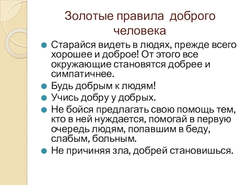 Слайд 25Золотые правила доброго человека