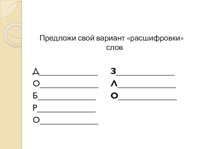 Слайд 31Предложи свой вариант «расшифровки» слов