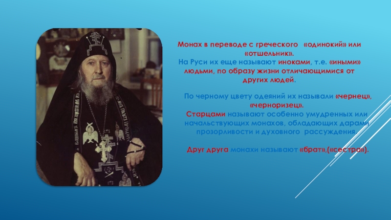 По черному цвету одеяний их называли «чернец», «черноризец».