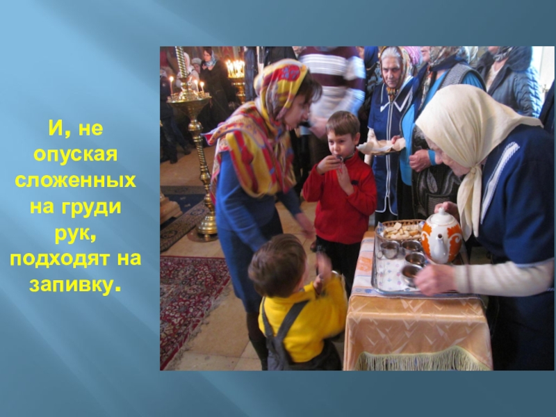 Слайд 46И, не опуская сложенных на груди рук, подходят на запивку.