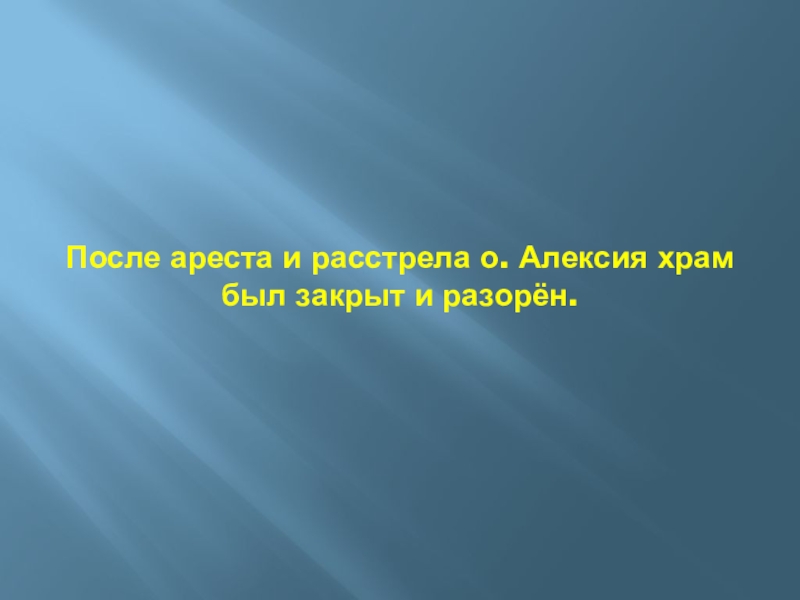 Слайд 9После ареста и расстрела о. Алексия храм был закрыт и разорён.