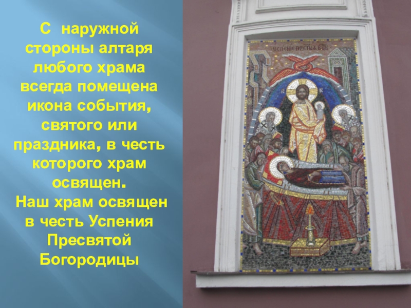 Слайд 48С наружной стороны алтаря любого храма всегда помещена икона события, святого