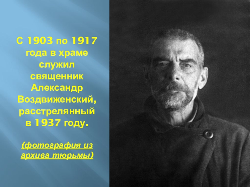 Слайд 5С 1903 по 1917 года в храме служил священник Александр Воздвиженский,