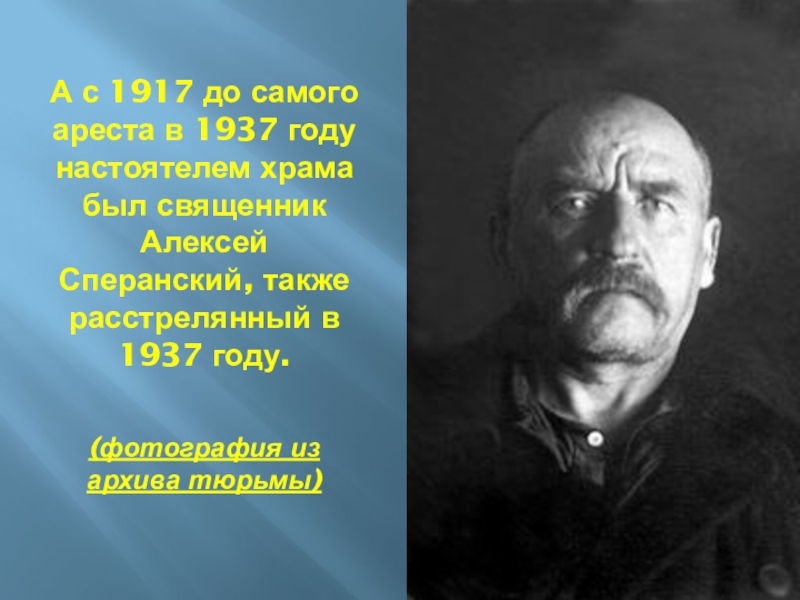 Слайд 6А с 1917 до самого ареста в 1937 году настоятелем храма