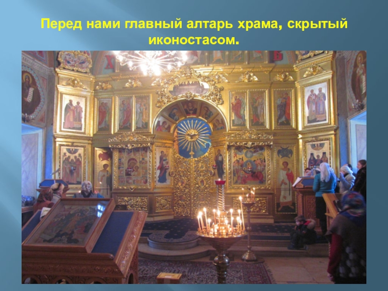 Слайд 37Перед нами главный алтарь храма, скрытый иконостасом.