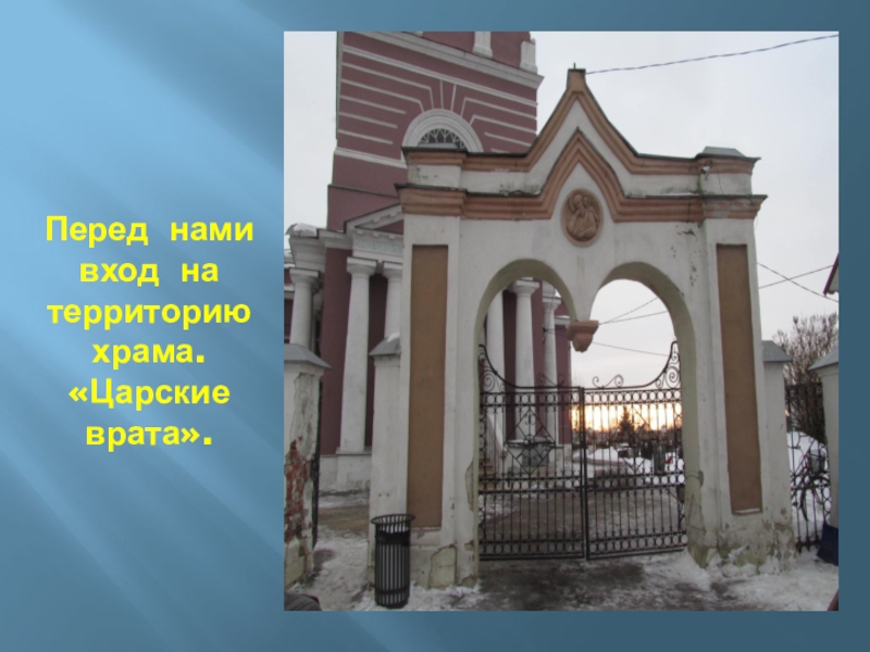 Слайд 27Перед нами вход на территорию храма. «Царские врата».