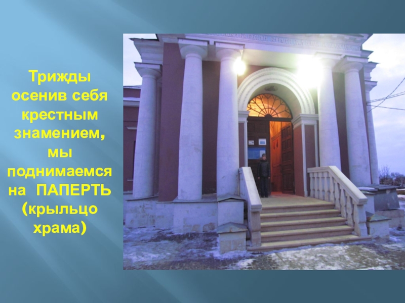 Слайд 31Трижды осенив себя крестным знамением, мы поднимаемся на ПАПЕРТЬ (крыльцо храма)