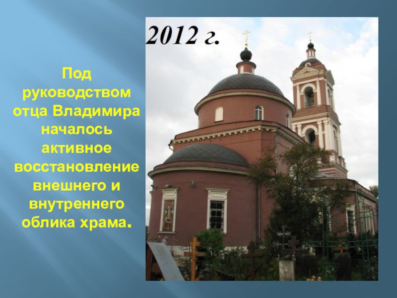 Слайд 15Под руководством отца Владимира началось активное восстановление внешнего и внутреннего облика