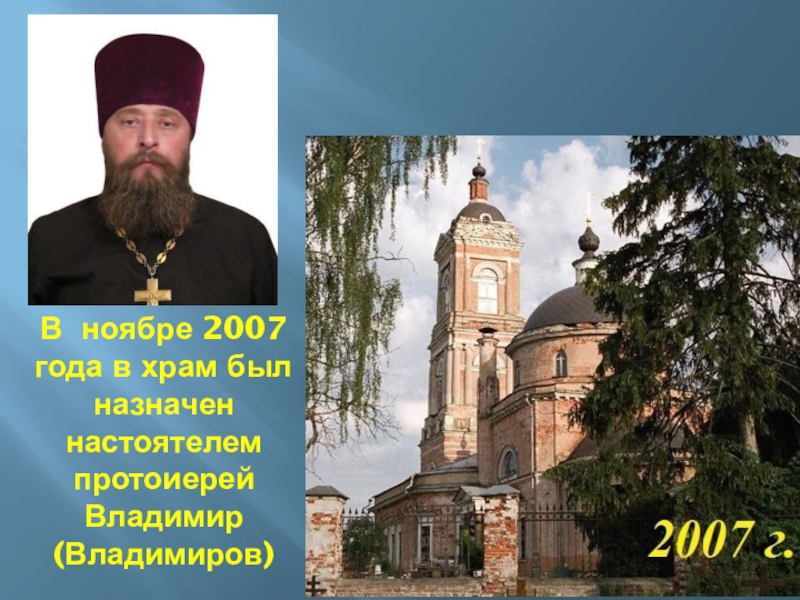 Слайд 14В ноябре 2007 года в храм был назначен настоятелем протоиерей Владимир