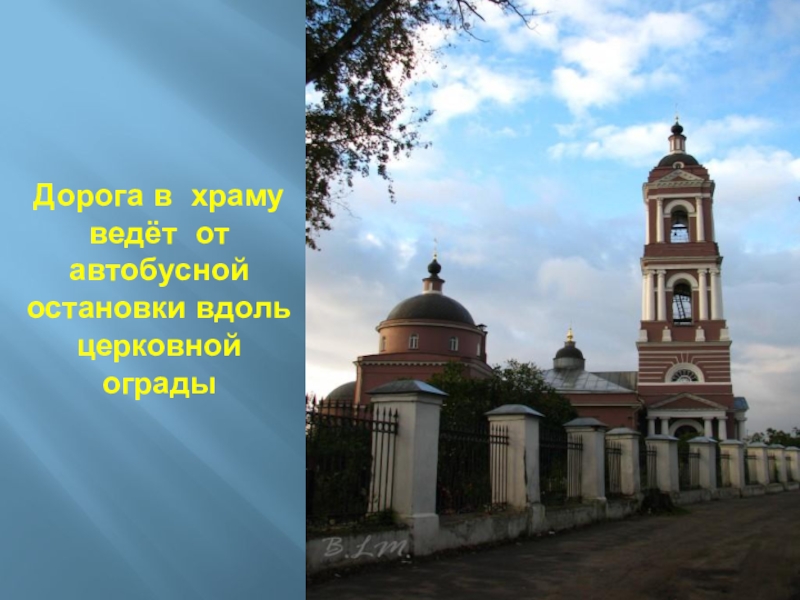 Слайд 26Дорога в храму ведёт от автобусной остановки вдоль церковной