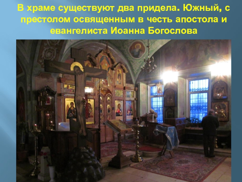 Слайд 52В храме существуют два придела. Южный, с престолом освященным в честь