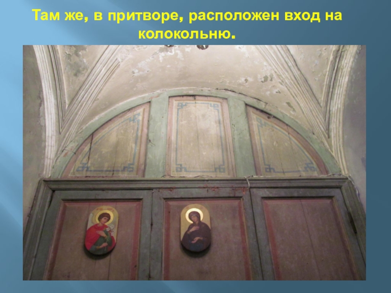 Слайд 35Там же, в притворе, расположен вход на колокольню.