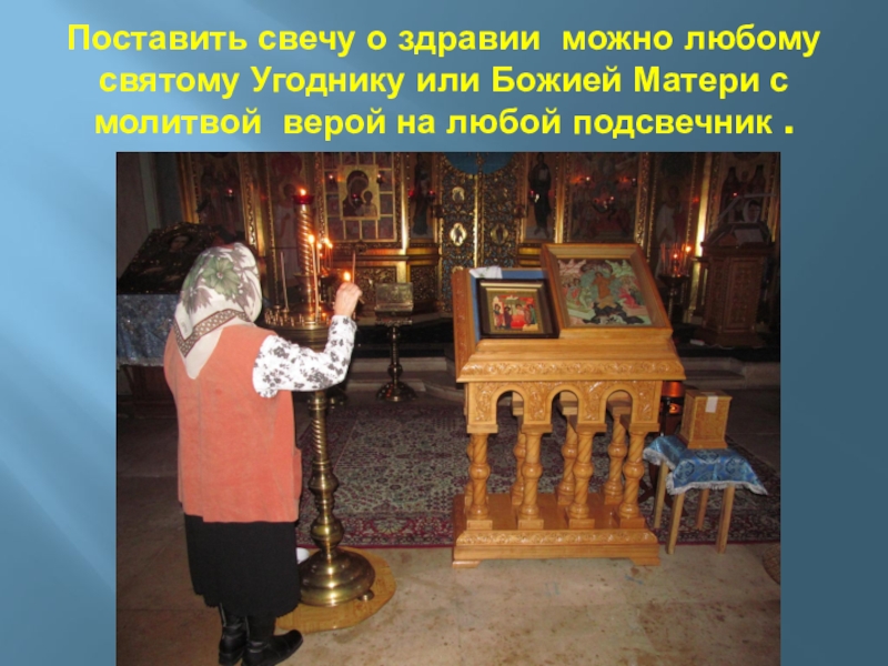 Слайд 61Поставить свечу о здравии можно любому святому Угоднику или Божией Матери