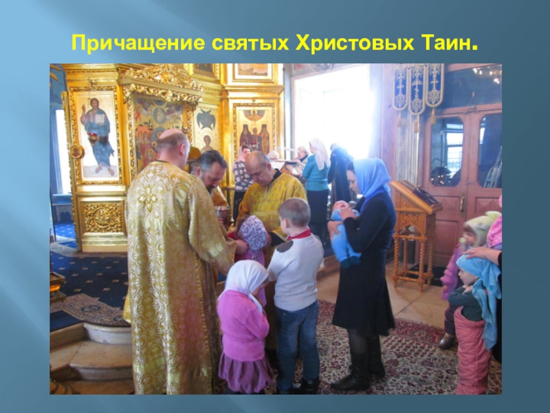 Слайд 44Причащение святых Христовых Таин.