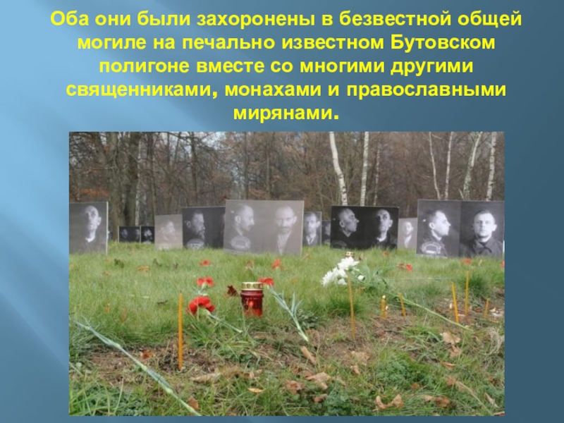 Слайд 7Оба они были захоронены в безвестной общей могиле на печально известном