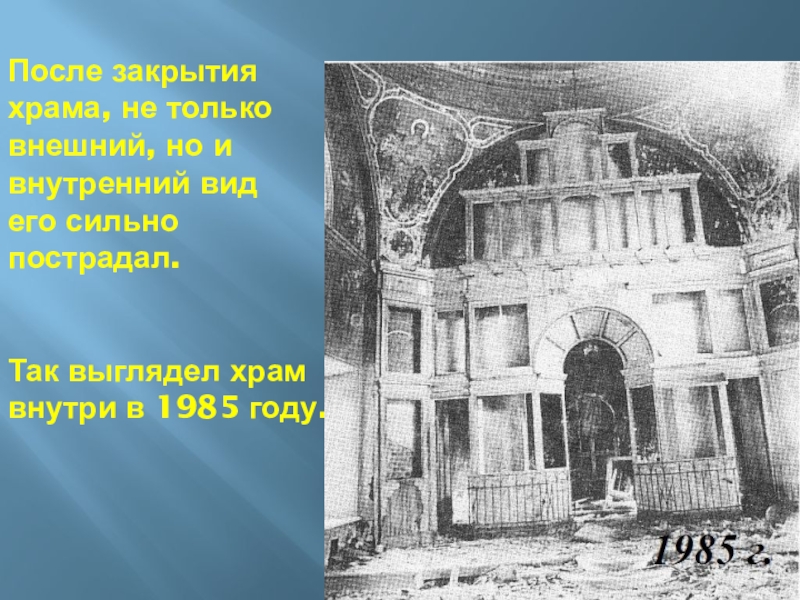 Слайд 65После закрытия храма, не только внешний, но и внутренний вид