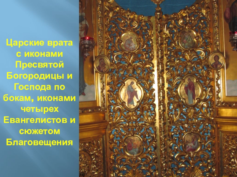 Слайд 74Справа и слева от царских врат, входить и выходить через которые