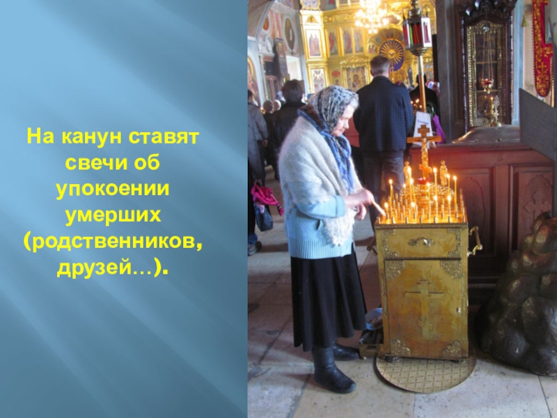 Слайд 57На канун ставят свечи об упокоении умерших (родственников, друзей…).
