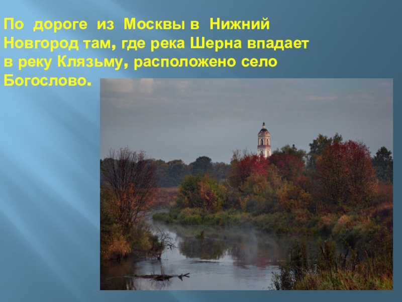 Слайд 2По дороге из Москвы в Нижний Новгород там, где река Шерна