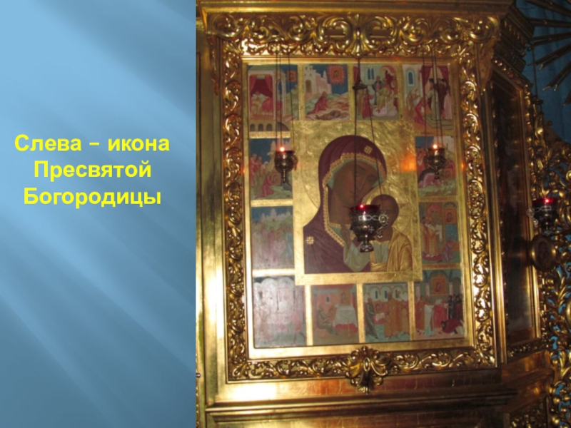 Слайд 72Слева – икона Пресвятой Богородицы