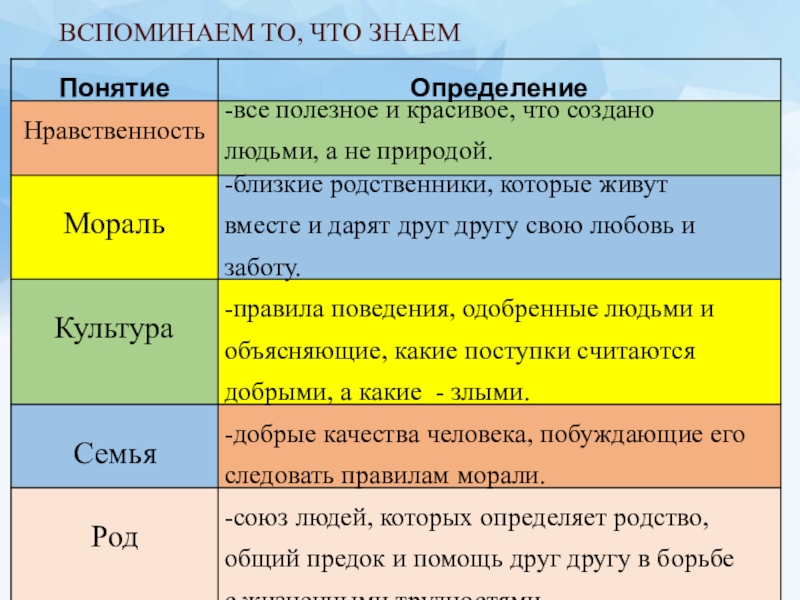 Устанавливаются общие правила поведения - что признавать хорошим, а что плохим.