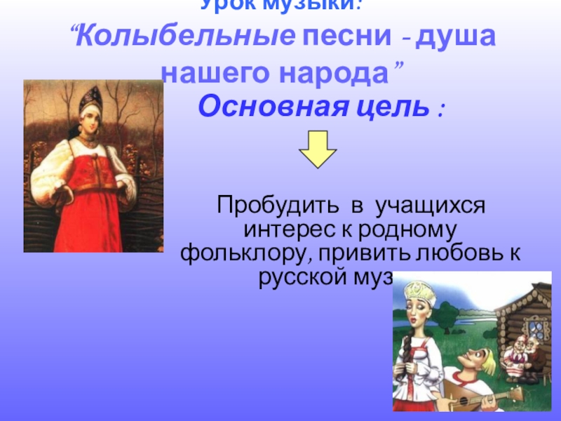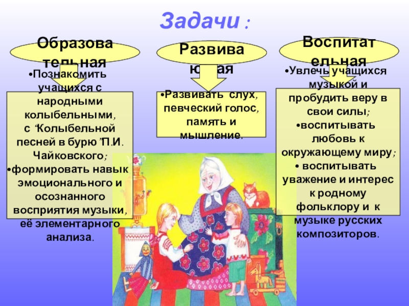 воспитывать уважение и интерес к родному фольклору и к музыке русских композиторов.
