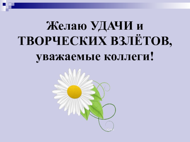 Слайд 14Желаю УДАЧИ и ТВОРЧЕСКИХ ВЗЛЁТОВ, уважаемые коллеги!