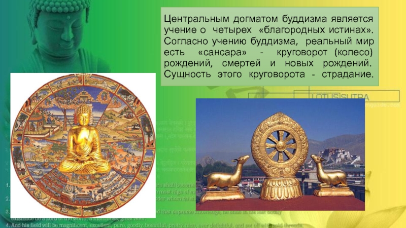 Центральным догматом буддизма является учение о четырех «благородных истинах».
