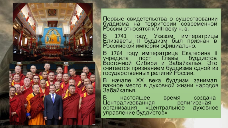 В 1741 году Указом императрицы Елизаветы II буддизм был признан в Российской империи официально.