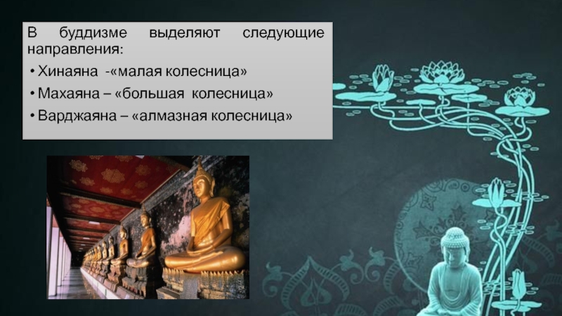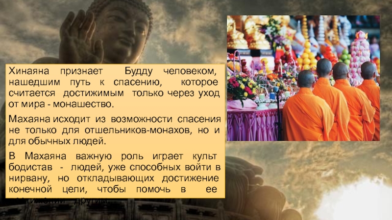 Слайд 10Хинаяна признает Будду человеком, нашедшим путь к спасению, которое считается достижимым