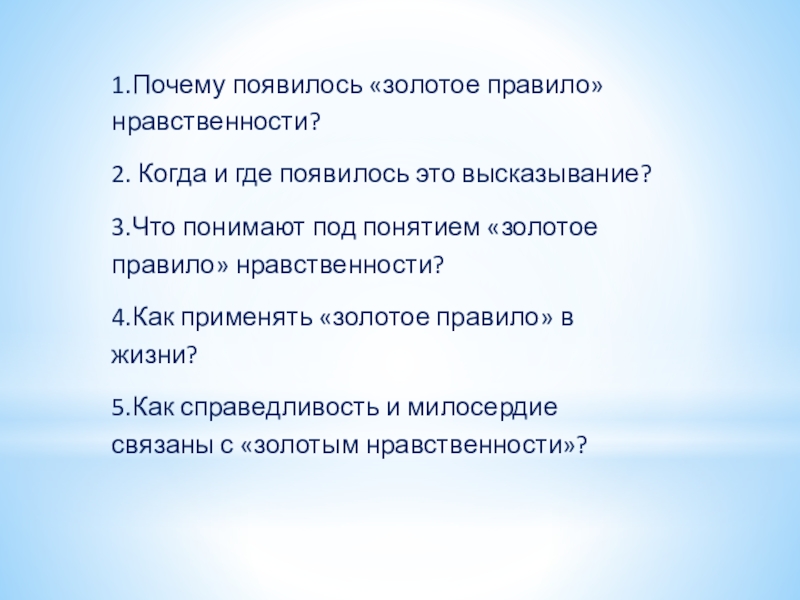 1. Осуществить проект по темам: «Золотое правило нравственности», « Справедливость и милосердие».