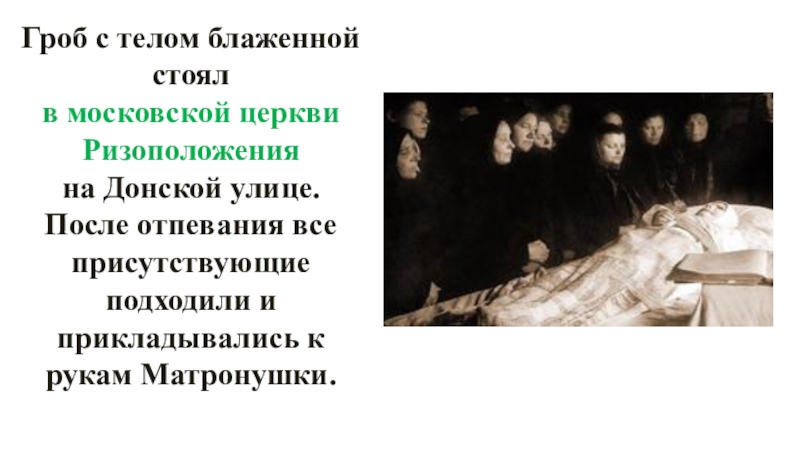 Слайд 16Матрона предсказывала: "После моей смерти на могилку мою мало будет ходить