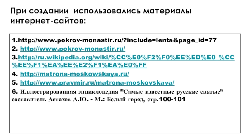 5. http://www.pravmir.ru/matrona-moskovskaya/