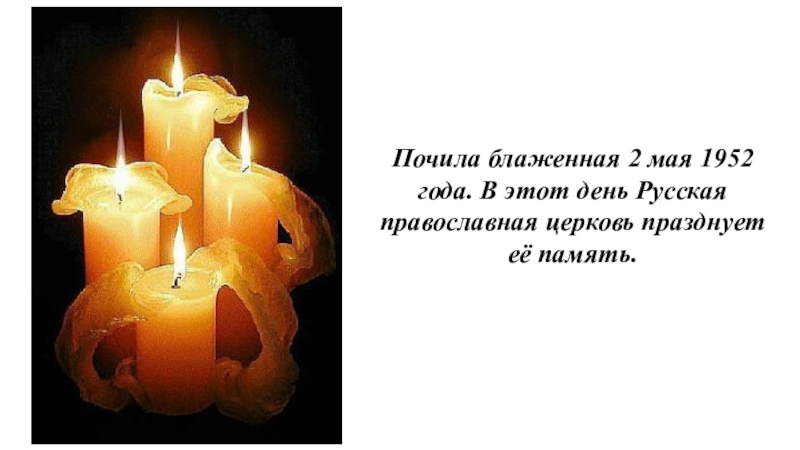 Слайд 17Почила блаженная 2 мая 1952 года. В этот день Русская православная